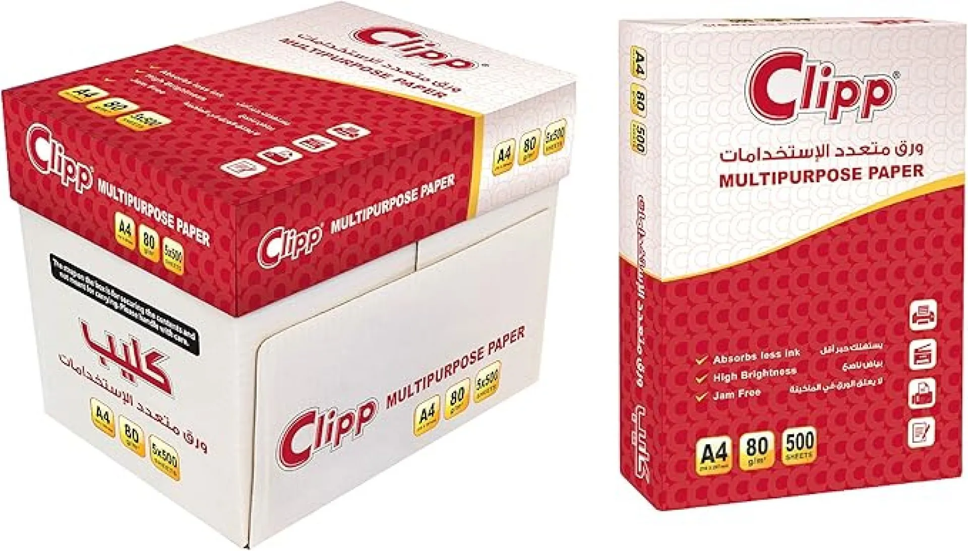 | الكمية | 5 رِزم في العلبة (500 ورقة لكل رزمة) |