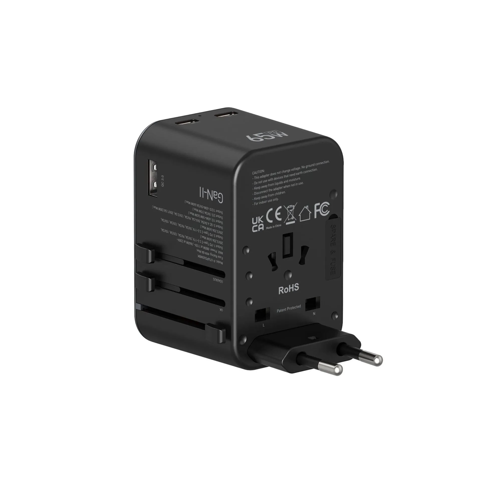 Platinum VITAL Series Universal Travel Adapter GaN 65W PDx2 + QC - Black - P-UTAPD65WBK