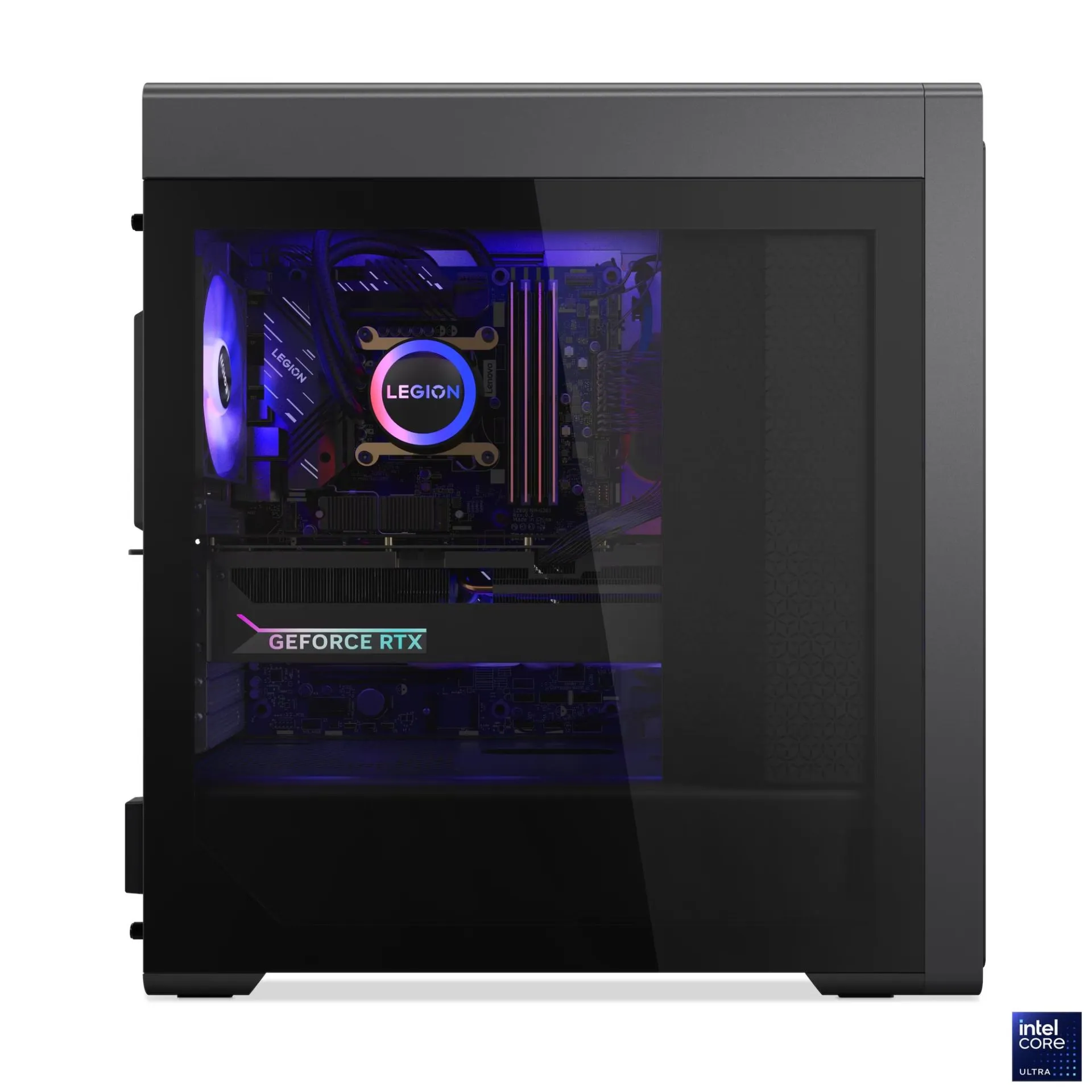 | Case & Lighting | 34 L Storm Grey tower, transparent side, Legion exterior + ambient RGB |