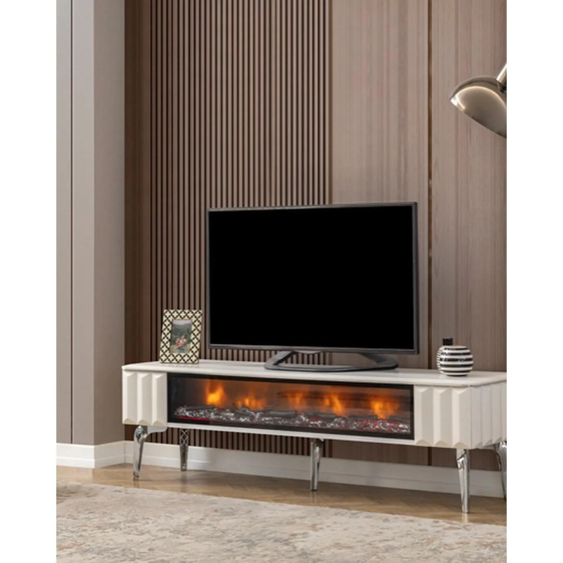 | Additional Information | There is no drawer or door in this model. The visual inside the fireplace has a Flame effect. It does not give heat. It is for visual purposes only. By plugging in the cable included with the product, you can turn the fireplace light on and off with the button on the cable. |