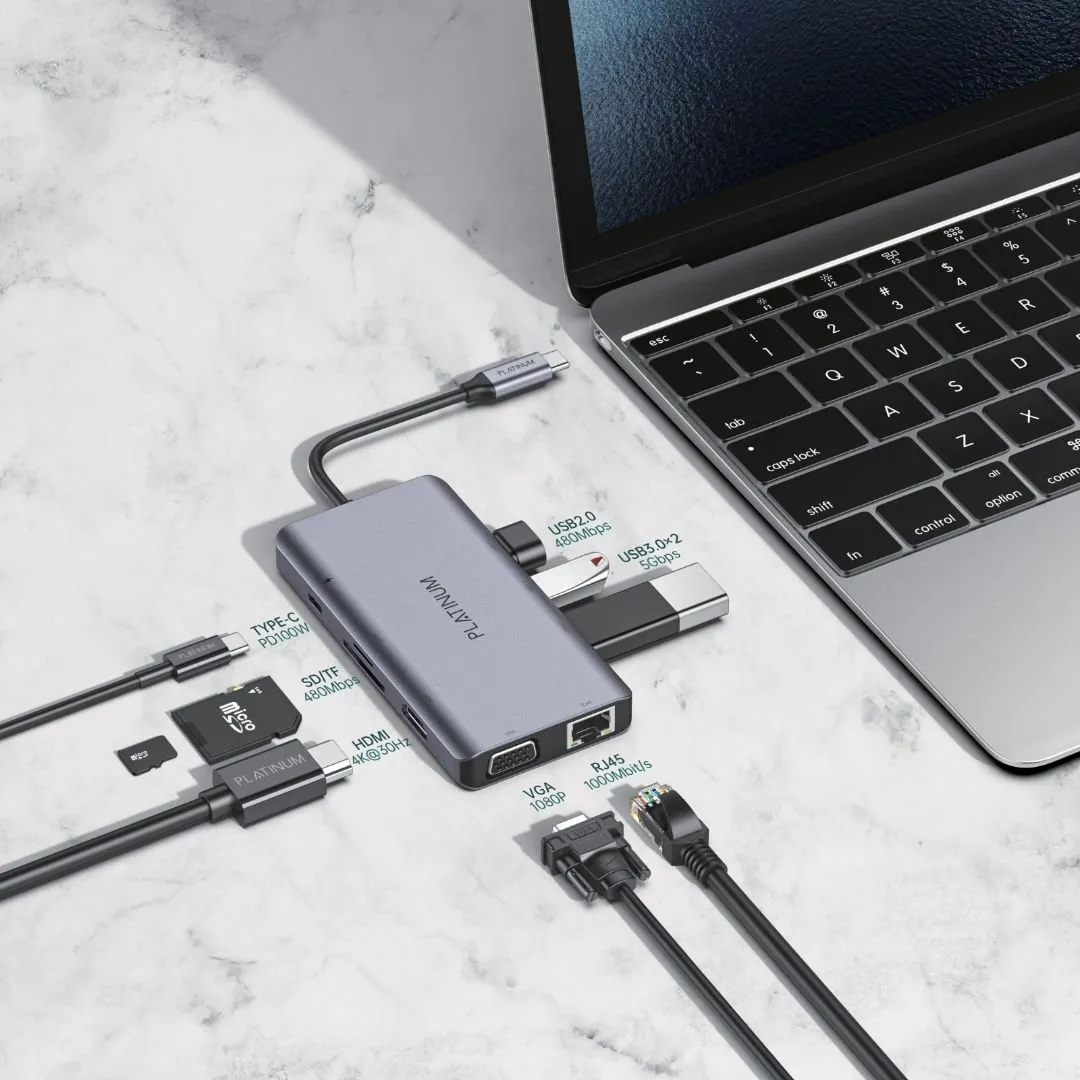 | Cable: | Type-C HUP (9in1) - Type-C to Tyoe-C PD +HDMI +SD+TF+VGA+RJ45+USB3.0X2+USB2.0 |