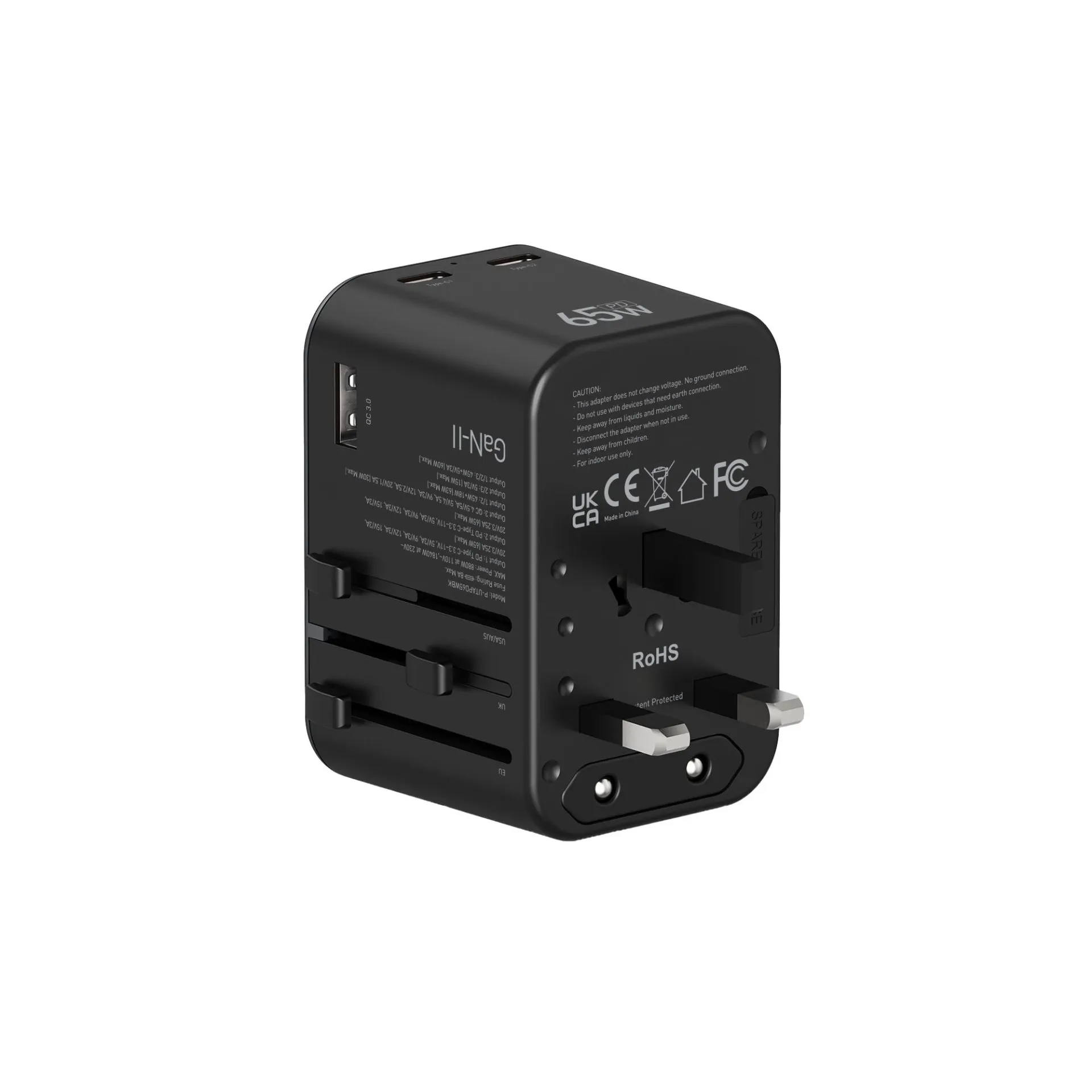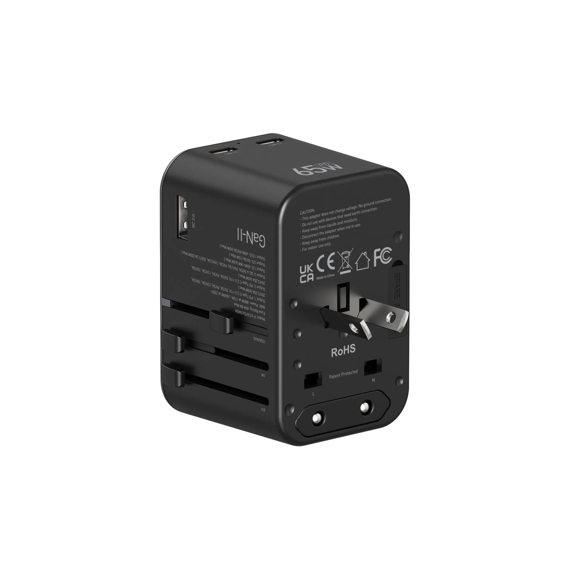 Platinum VITAL Series Universal Travel Adapter GaN 65W PDx2 + QC - Black - P-UTAPD65WBK